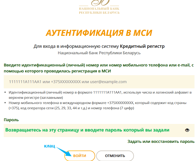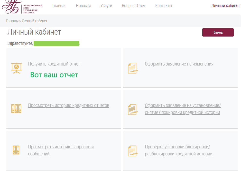 Заходите на сайт: creditregister.by и нажимаете на кнопку ПОЛУЧИТЬ КРЕДИТНЫЙ ОТЧЕТ