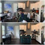 Кухня – пол, мебель, микроволновая печь/плита/холодильник , вытяжка, удаление местных загрязнений, вынос мусора.